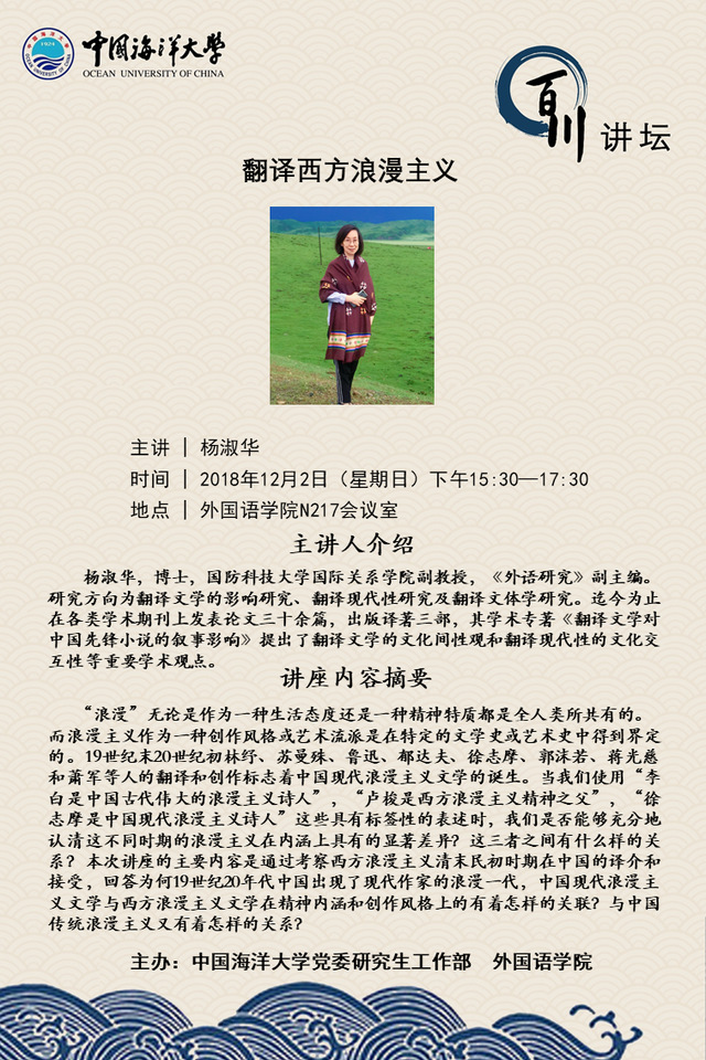 研究生百川講壇-楊淑華:翻譯西方浪漫主義
