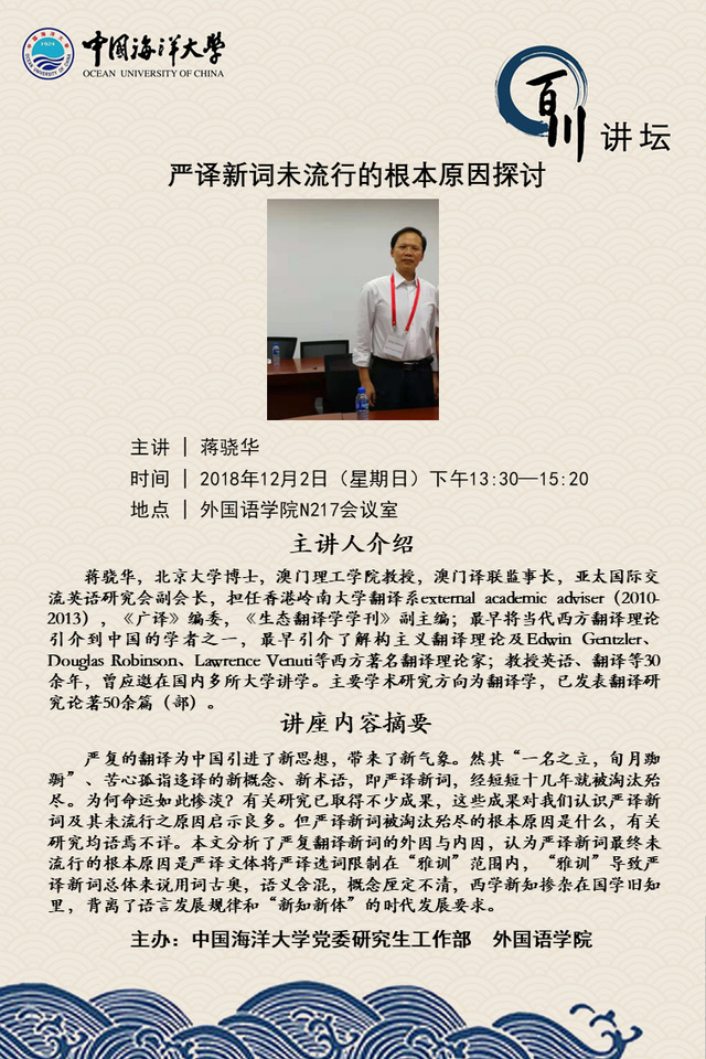 研究生百川講壇-蔣驍華:嚴(yán)譯新詞未流行的根本原因探討