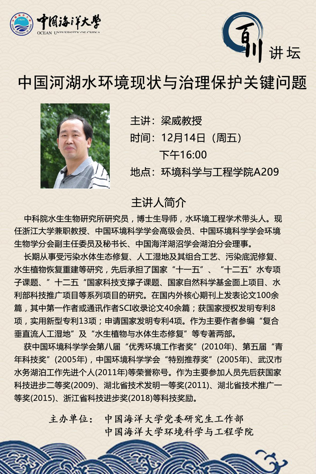 研究生百川講壇-梁威:中國(guó)河湖水環(huán)境現(xiàn)狀與治理保護(hù)關(guān)鍵問題