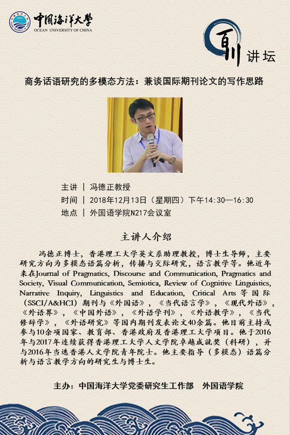 研究生百川講壇-馮德正:商務(wù)話語(yǔ)研究的多模態(tài)方法:兼談國(guó)際期刊論文的寫(xiě)作思路