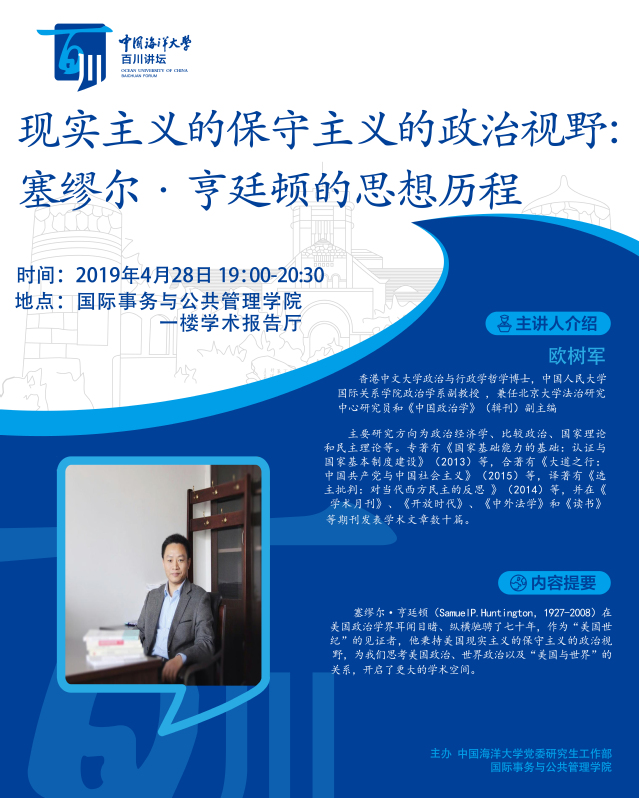 研究生百川講壇-歐樹軍:現實主義的保守主義的政治視野:塞繆爾·亨廷頓的思想歷程
