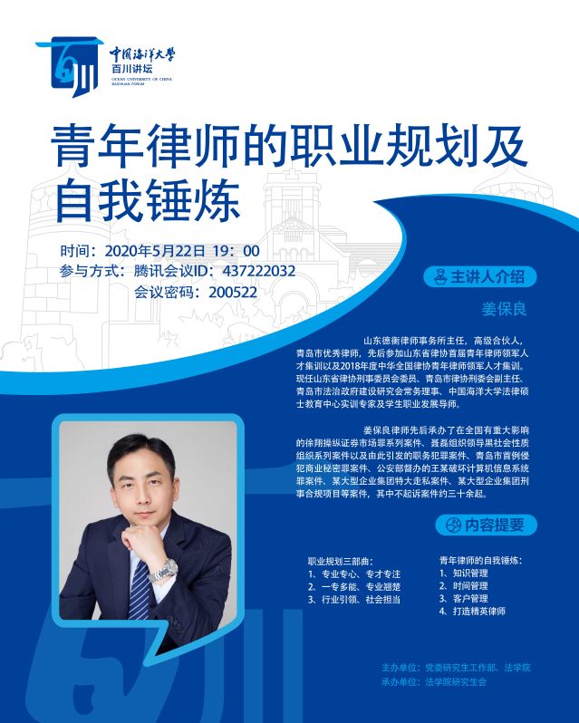 研究生百川講壇-姜保良:青年律師的職業規劃及自我錘煉
