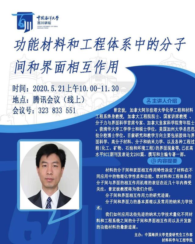 研究生百川講壇-曾宏波:功能材料和工程體系中的分子間和界面相互作用
