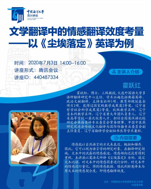 研究生百川講壇-霍躍紅:文學(xué)翻譯中的情感翻譯效度考量——以《塵埃落定》英譯為例