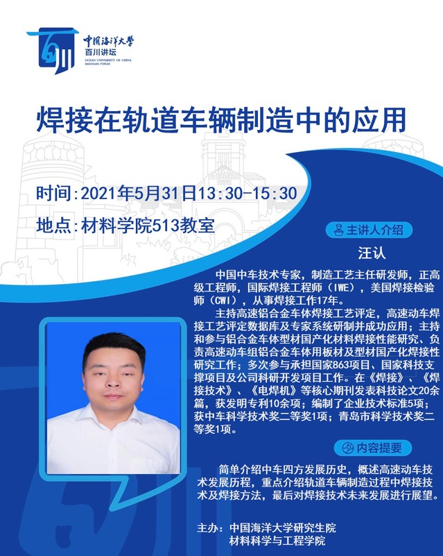 研究生百川講壇-汪認:焊接在軌道車輛制造中的應用