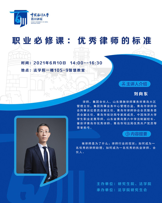 研究生百川講壇-劉向東:職業必修課—優秀律師的標準