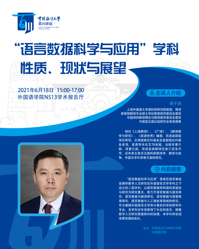 研究生百川講壇-韓子滿:“語言數據科學與應用”學科性質、現狀與展望