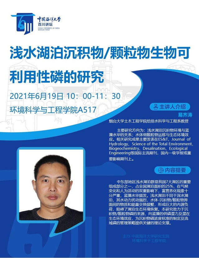 研究生百川講壇-易齊濤:淺水湖泊沉積物/顆粒物生物可利用性磷的研究