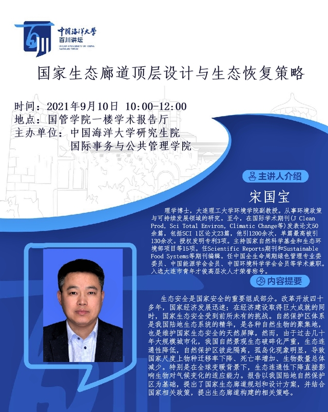 研究生百川講壇-宋國寶:國家生態(tài)廊道頂層設計與生態(tài)恢復策略