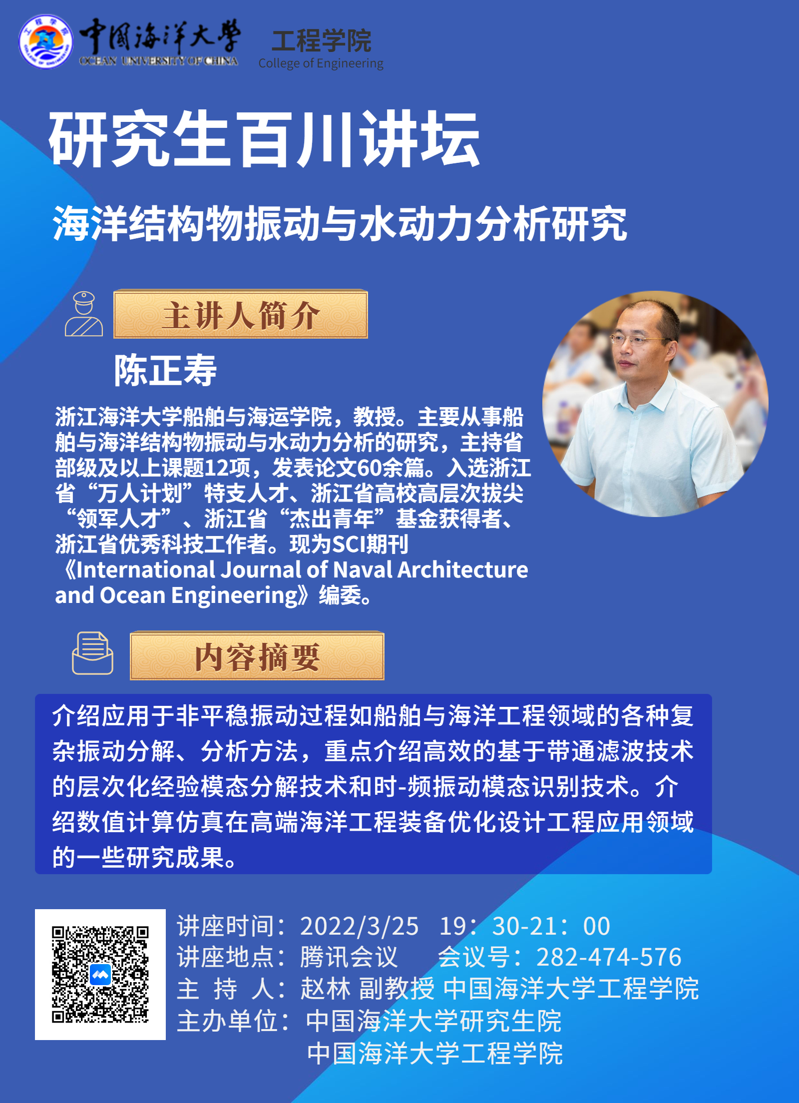 研究生百川講壇第152講-陳正壽:海洋結構物振動與水動力分析研究