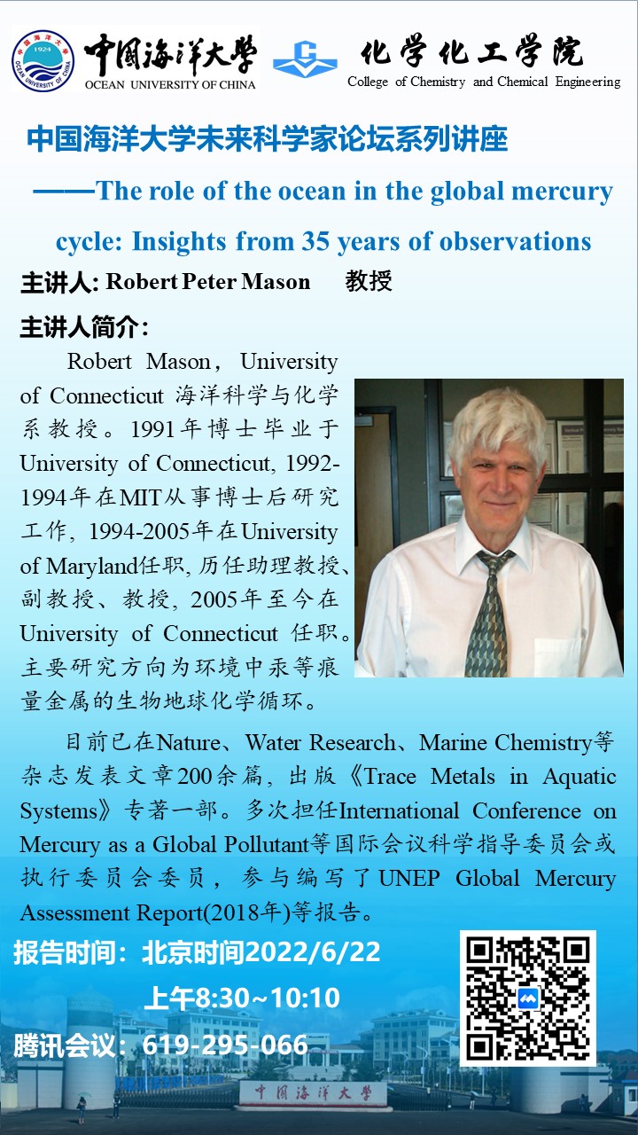 未來科學(xué)家論壇-Robert Peter Mason:The role of the ocean in the global mercury cycle: Insights from 35 years of observations