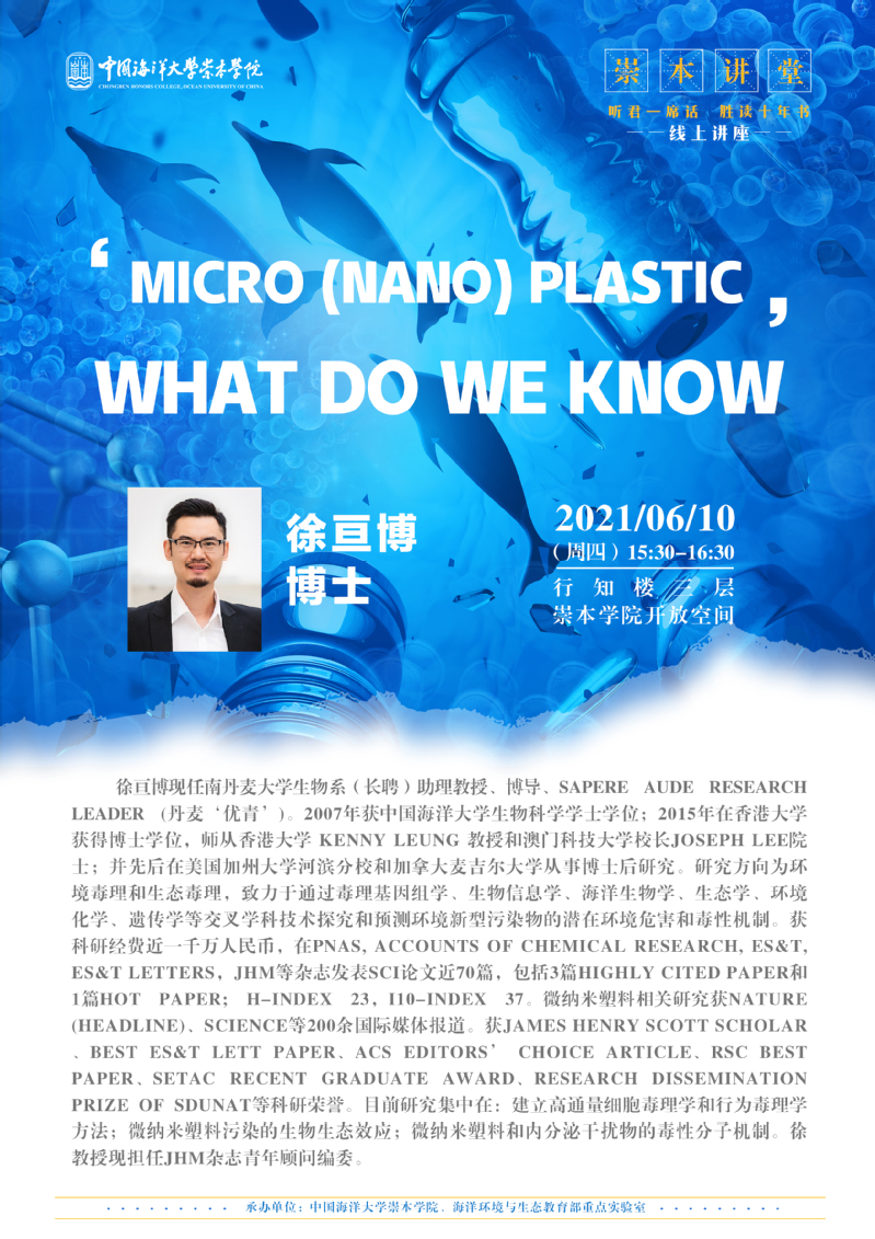 崇本講堂第十七講-徐亙博:MICRO(NANO) PLASTIC,WHAT DO WE KNOW