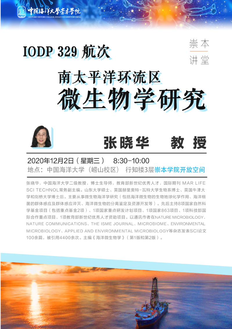 崇本講堂第十一講-張曉華:IODP 329 航次—–南太平洋環流區微生物學研究