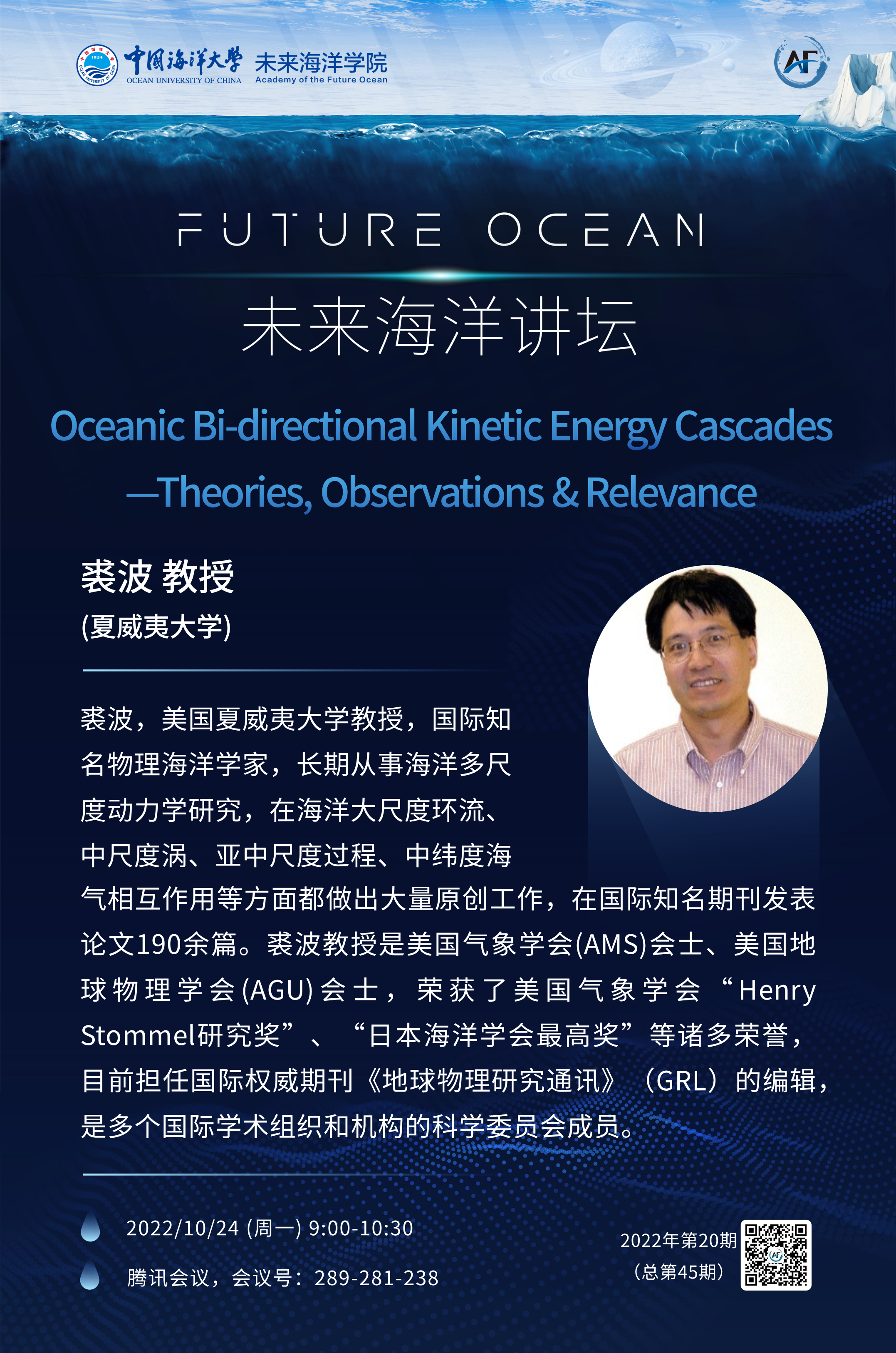 未來(lái)海洋講壇第45講(2022年第20期)-裘波:Oceanic Bi-directional Kinetic Energy Cascades —Theories, Observations & Relevance