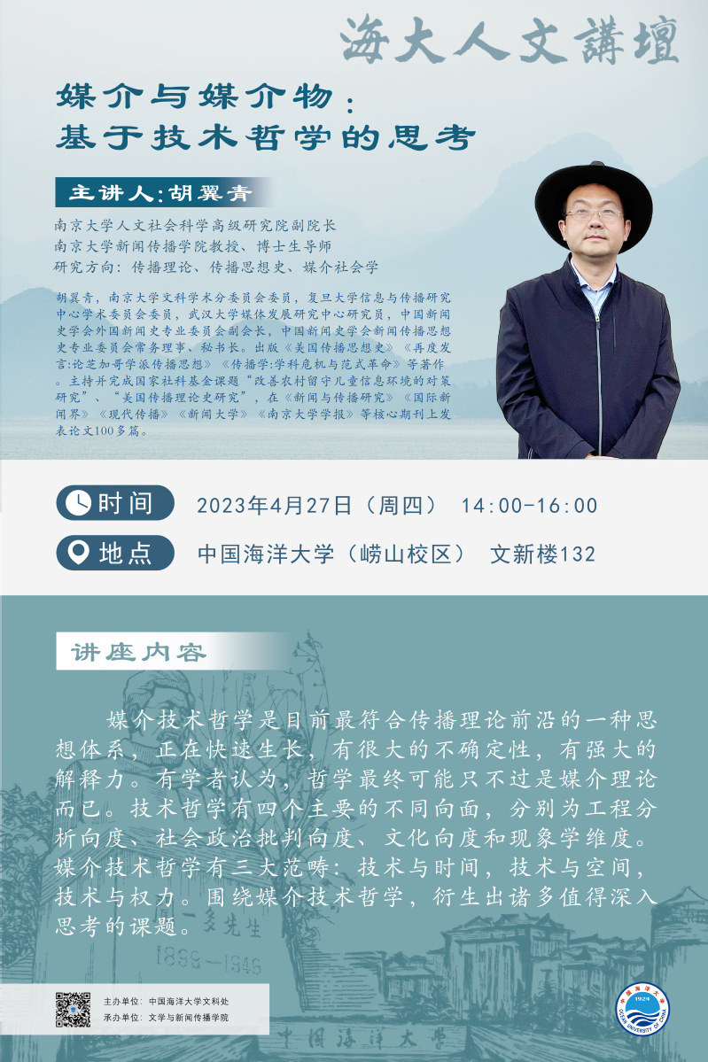海大人文講壇2023年第21講-胡翼青:媒介與媒介物:基于技術哲學的思考