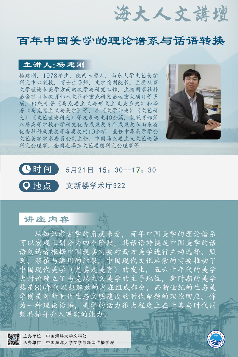 海大人文講壇2023年第31講-楊建剛:百年中國美學的理論譜系與話語轉換
