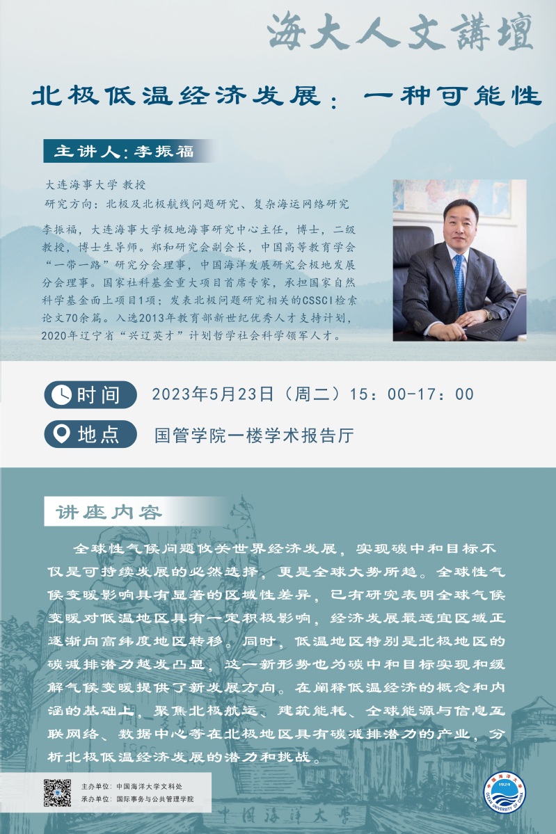 海大人文講壇2023年第33講-李振福:北極低溫經濟發展:一種可能性