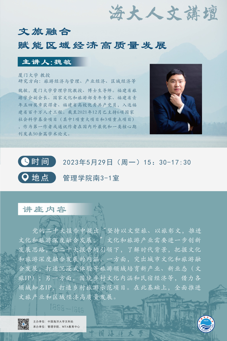 海大人文講壇2023年第34講-魏敏:文旅融合賦能區域經濟高質量發展