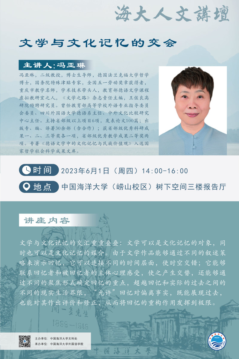 海大人文講壇2023年第35講-馮亞琳:文學(xué)與文化記憶的交會(huì)