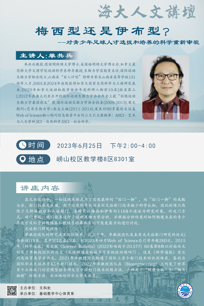海大人文講壇2023年第48講-單共兵:梅西型還是伊布型——對青少年足球人才選拔和培養的科學重新審視