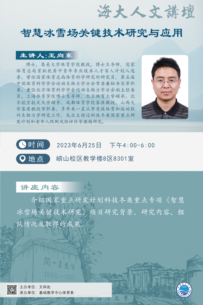 海大人文講壇2023年第49講-王向東:智慧冰雪場關鍵技術研究與應用