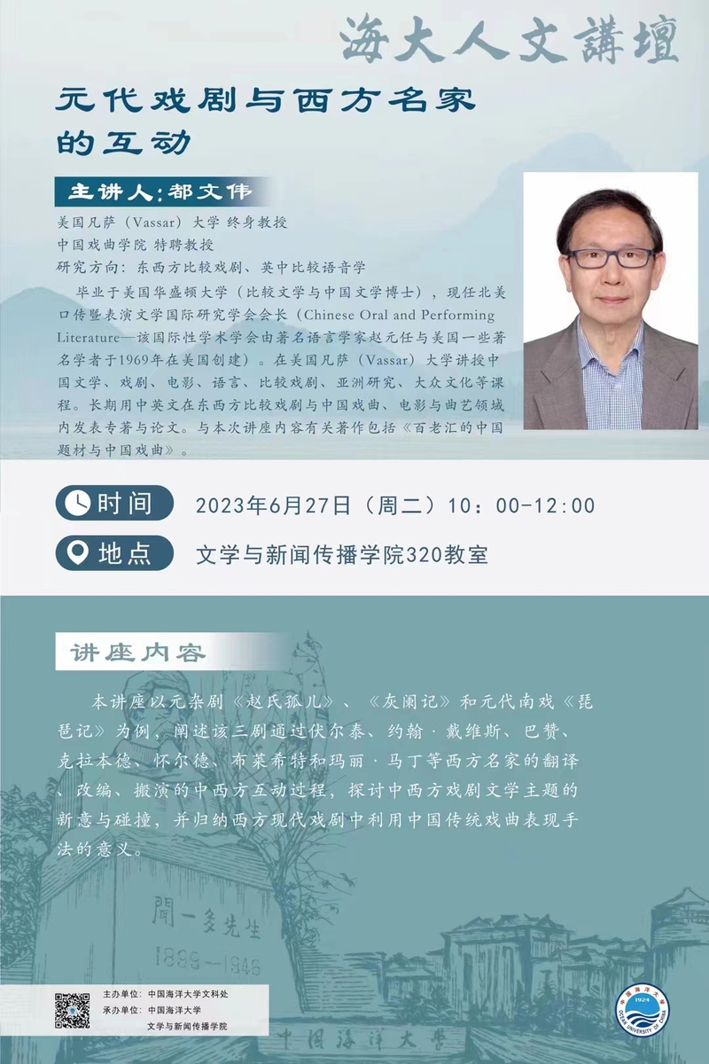 海大人文講壇2023年第50講-都文偉:元代戲劇與西方名家的互動