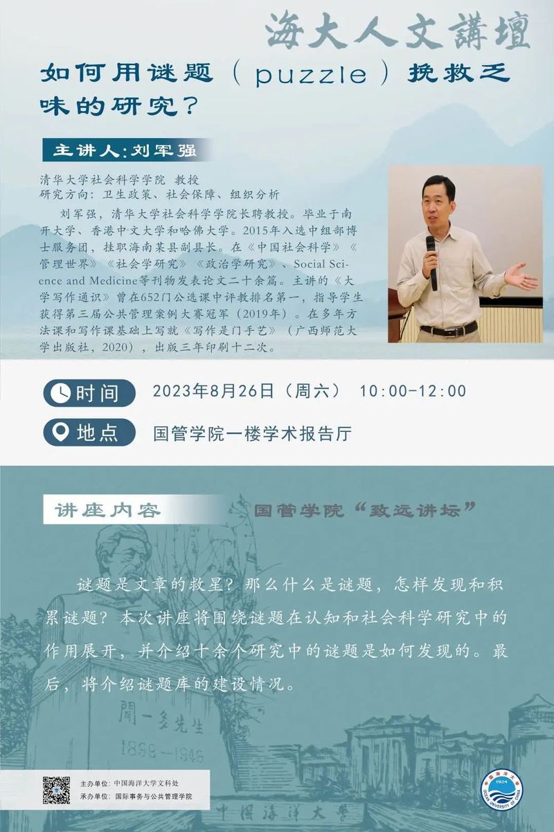 海大人文講壇2023年第58講-劉軍強:如何用謎題(puzzle)挽救乏味的研究?