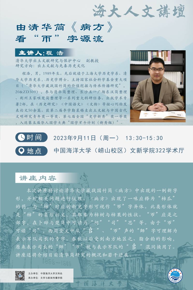 海大人文講壇2023年第60講-程浩:由清華簡《病方》看“帀”字源流