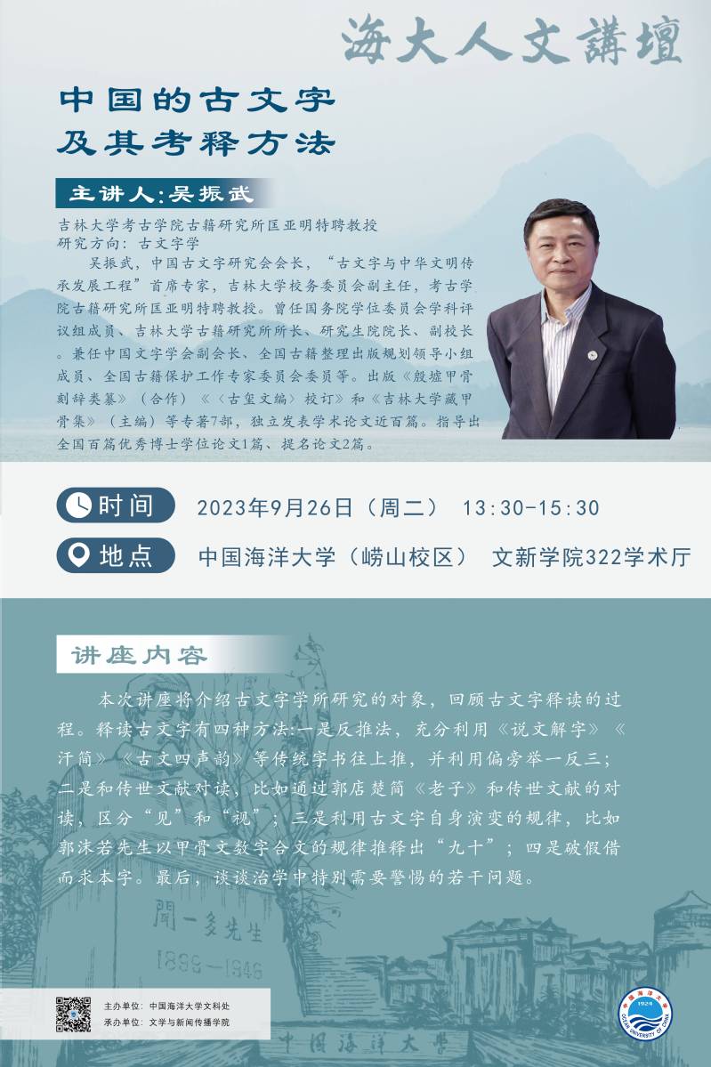 海大人文講壇2023年第65講-吳振武:中國的古文字及其考釋方法
