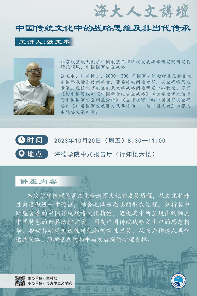 海大人文講壇2023年第72講-張文木:中國傳統(tǒng)文化中的戰(zhàn)略思維及其當(dāng)代傳承