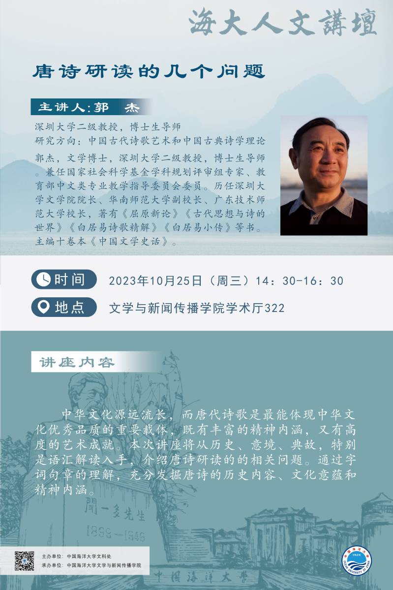 海大人文講壇2023年第78講-郭杰:唐詩(shī)研讀的幾個(gè)問(wèn)題