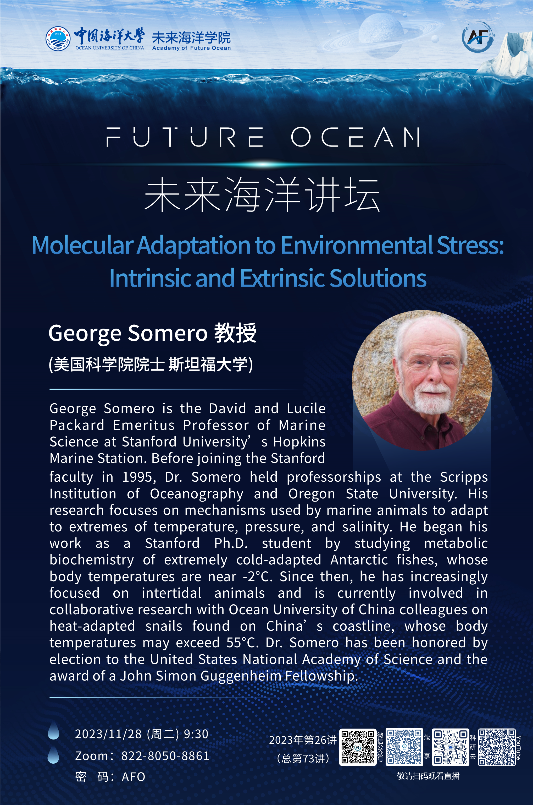 未來(lái)海洋講壇第73講(2023年第26講)-George Somero:Molecular Adaptation to Environmental Stress: Intrinsic and Extrinsic Solutions