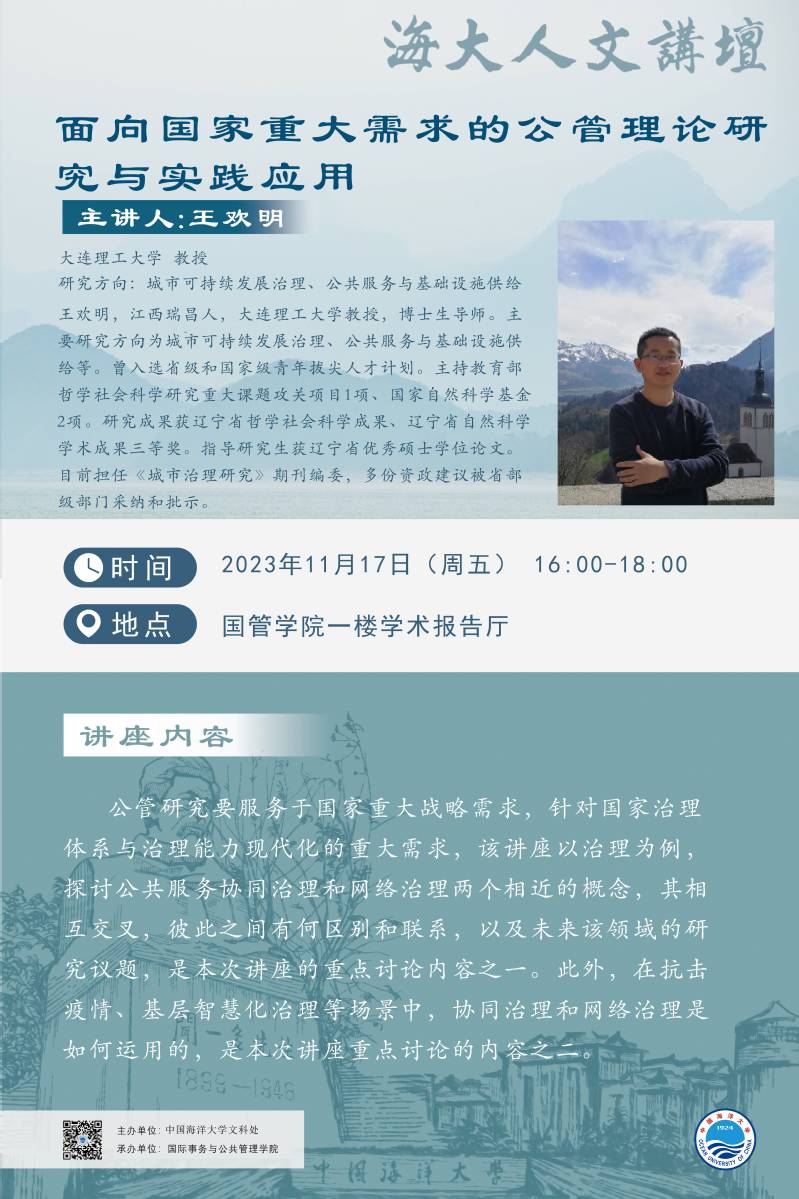 海大人文講壇2023年第86講-王歡明:面向國家重大需求的公管理論研究與實踐應(yīng)用