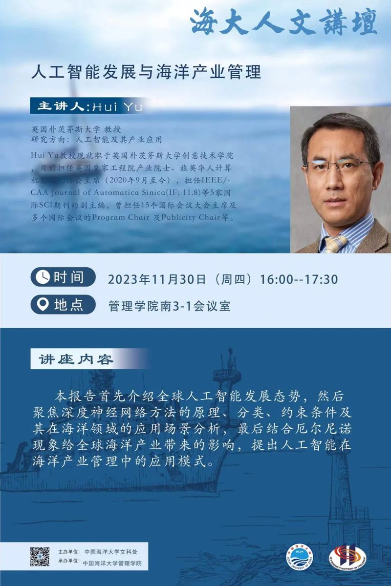 海大人文講壇2023年第91講-于慧:人工智能發展與海洋產業管理
