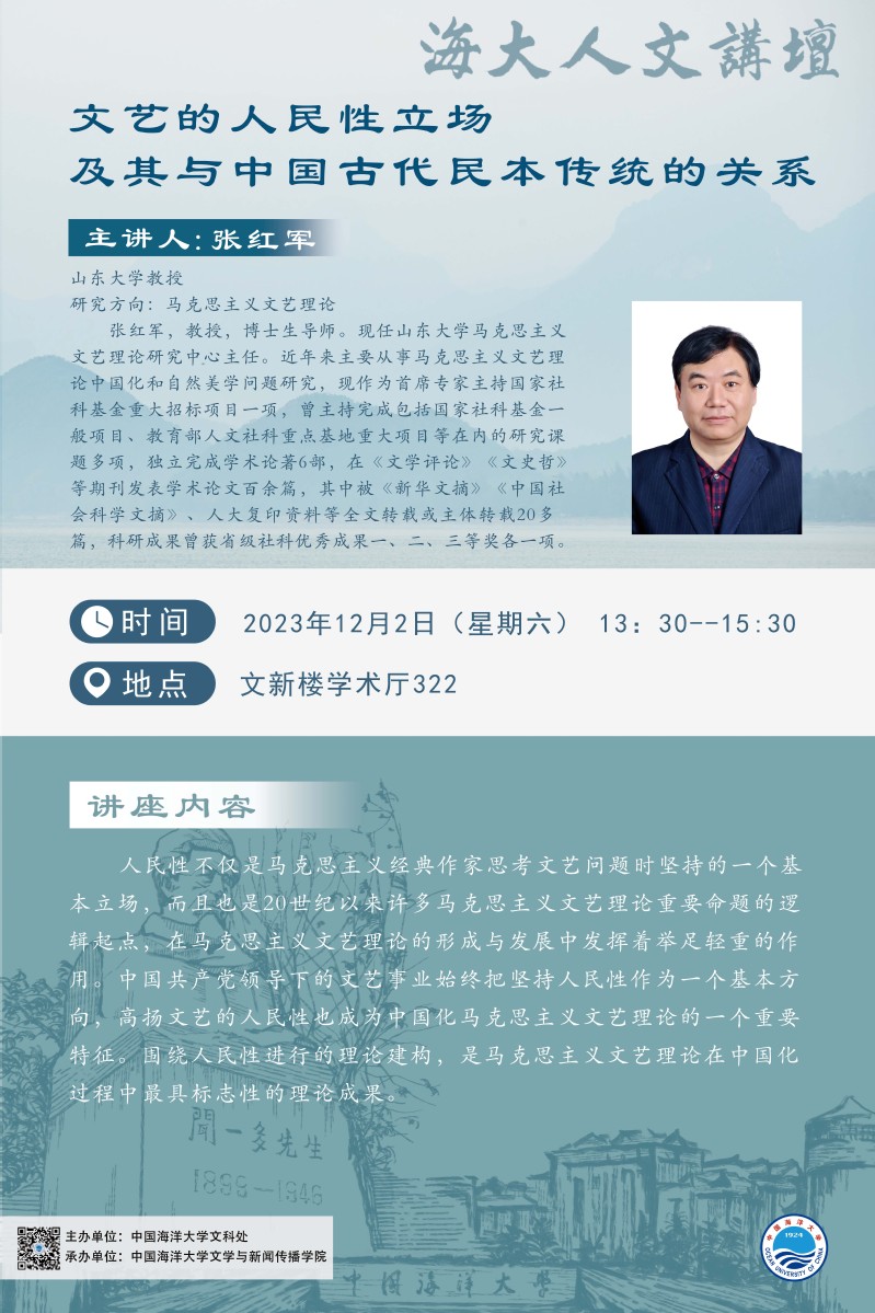 海大人文講壇2023年第94講-張紅軍:文藝的人民性立場及其與中國古代民本傳統的關系