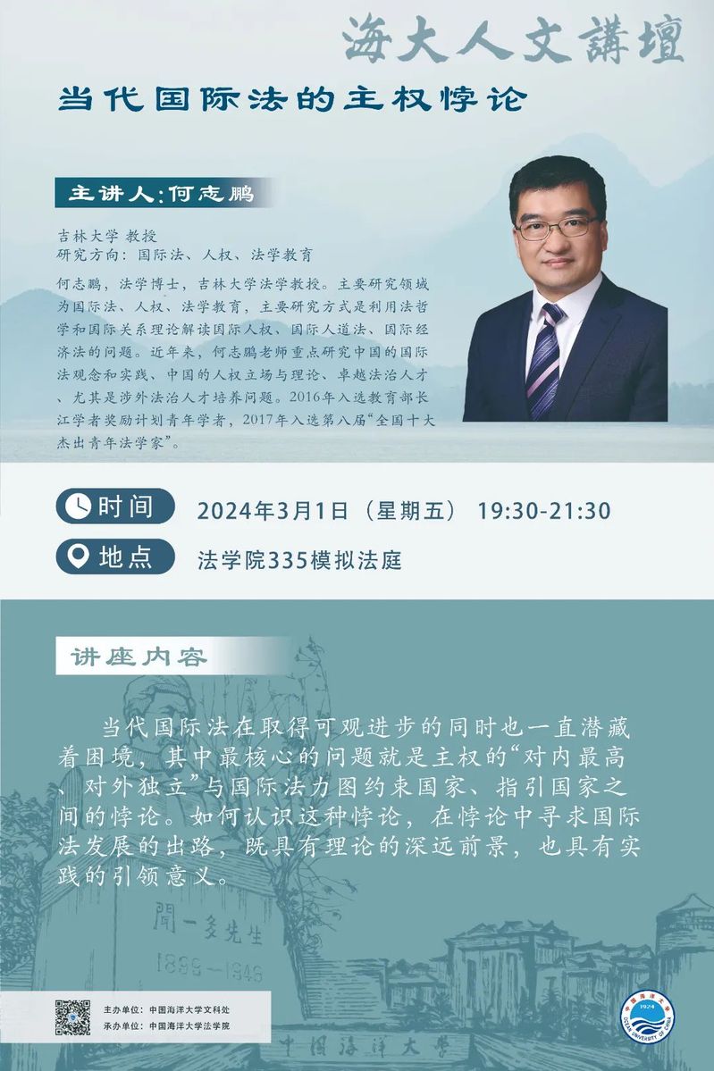 海大人文講壇2024年第3講-何志鵬:當代國際法的主權悖論