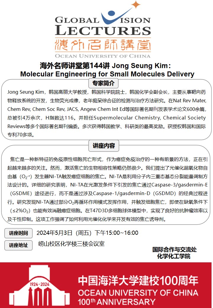 海外名師講堂第一百四十四講-Jong Seung Kim:Molecular Engineering for Small Molecules Delivery