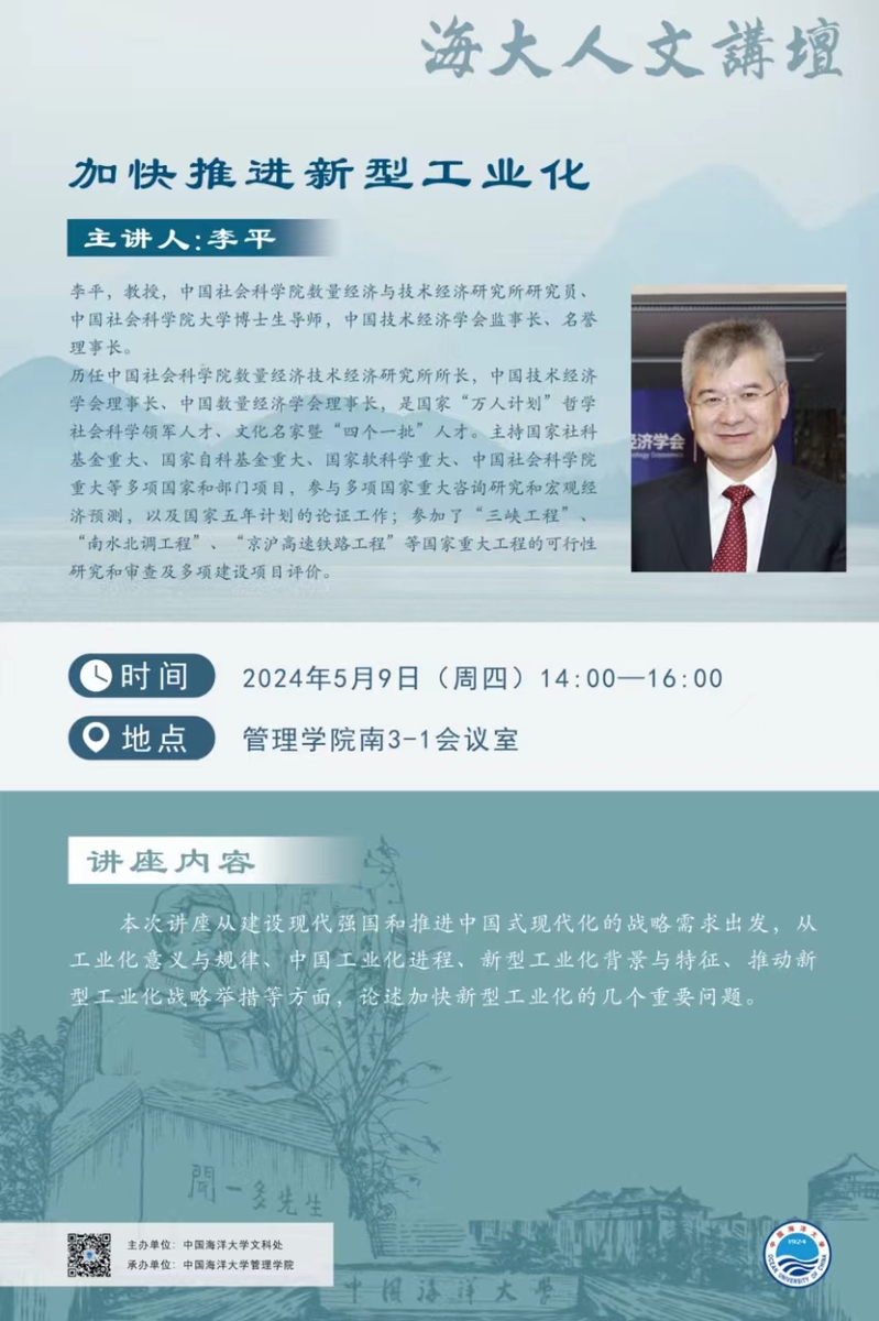 海大人文講壇2024年第25講-李平:加快推進新型工業化
