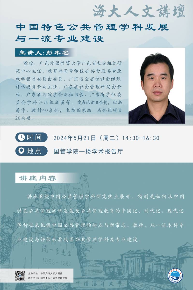 海大人文講壇2024年第39講-彭未名:中國特色公共管理學科發展與一流專業建設