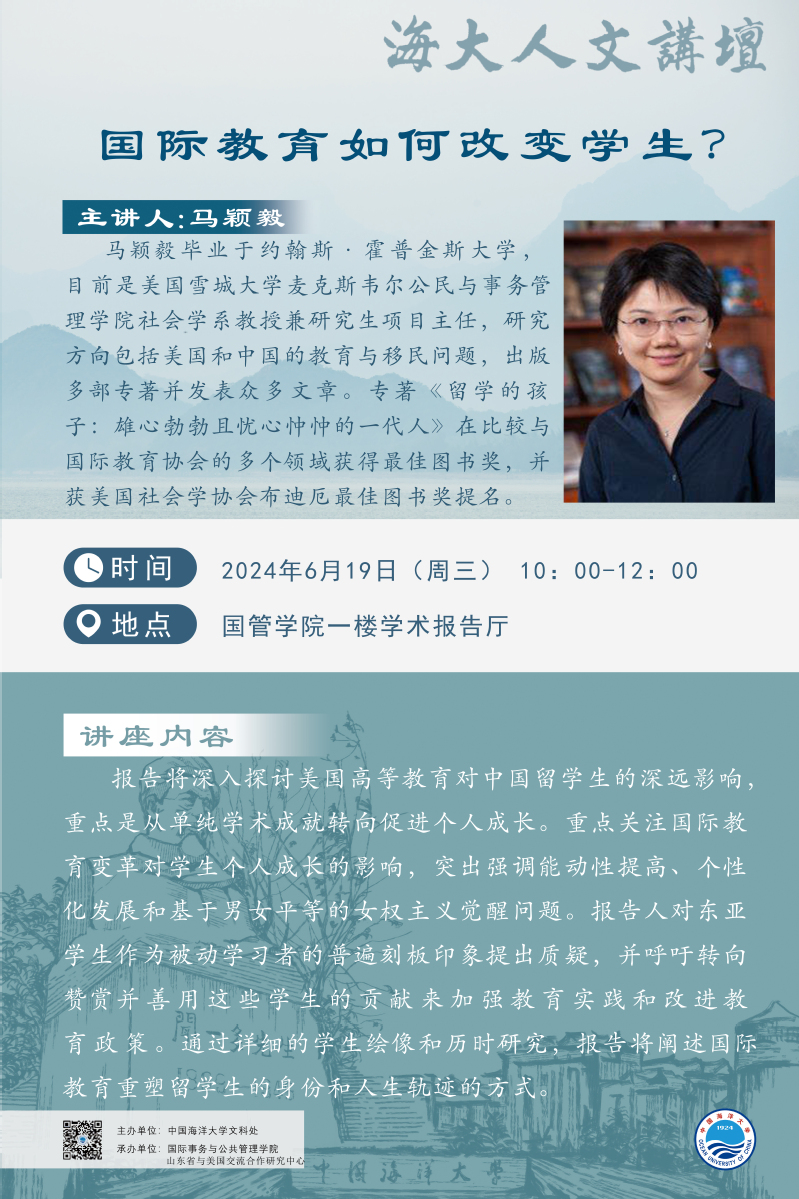 海大人文講壇2024年第47講-馬穎毅:國際教育如何改變學生