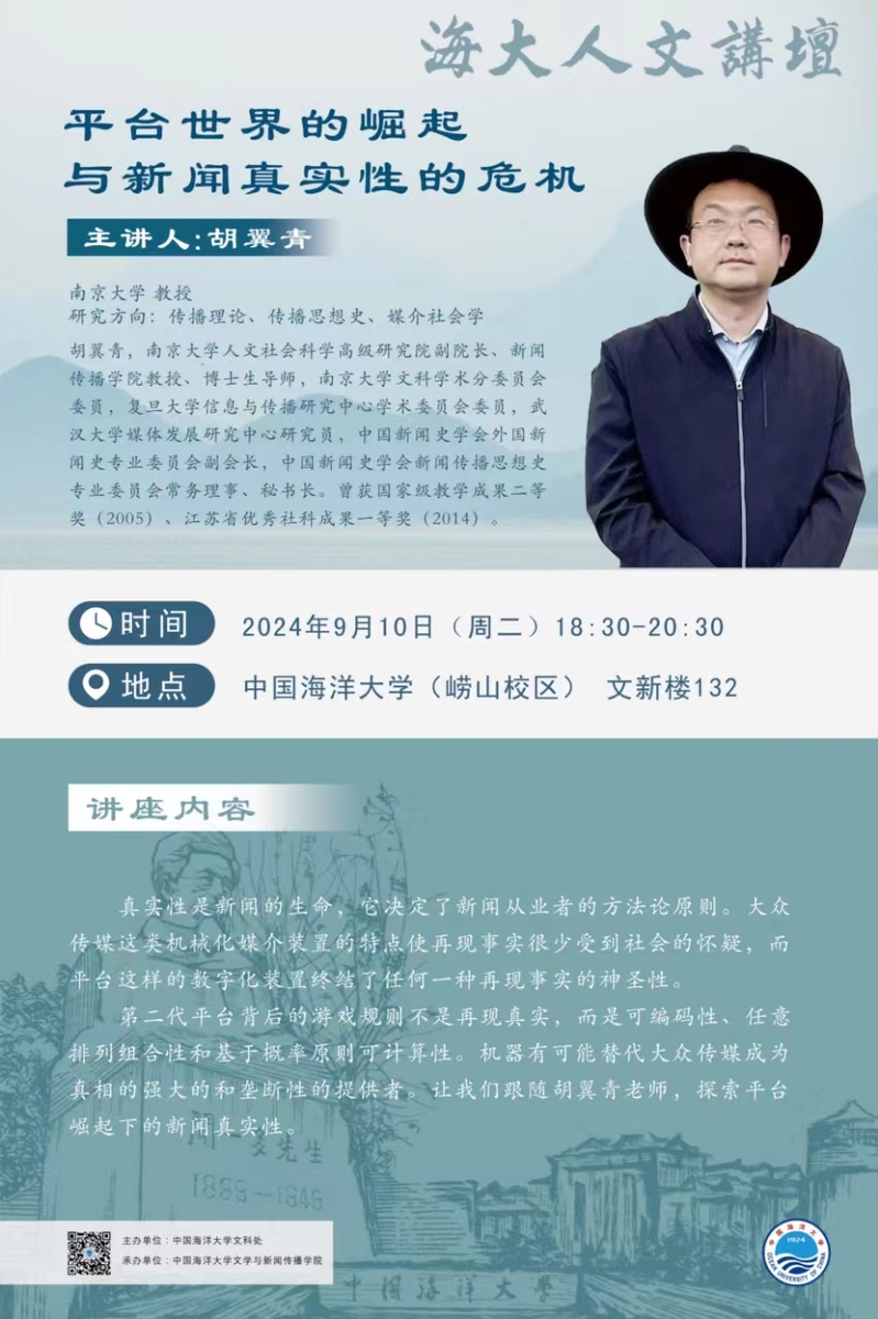 海大人文講壇2024年第60講-胡翼青:平臺世界的崛起與新聞真實性的危機