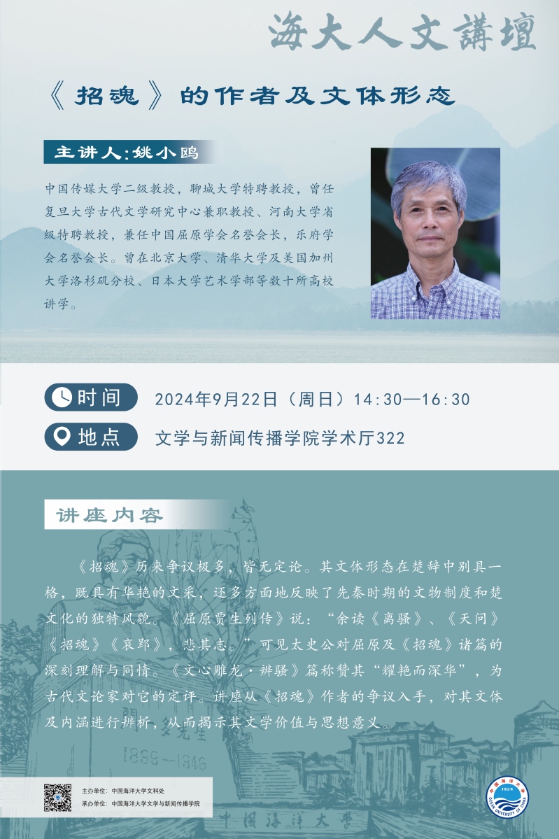 海大人文講壇2024年第62講-姚小鷗:?《招魂》的作者及文體形態