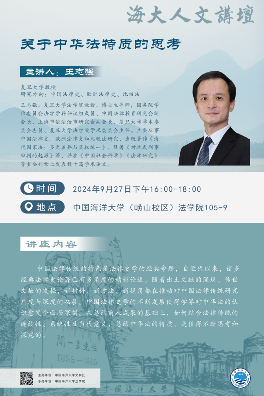 海大人文講壇2024年第68講-王志強:關于中華法特質的思考