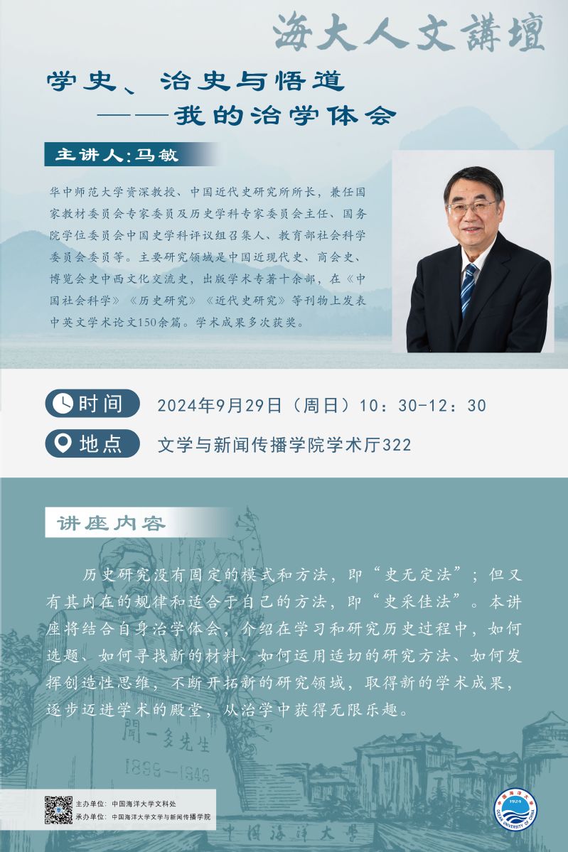 海大人文講壇2024年第70講-馬敏:學(xué)史、治史與悟道——我的治學(xué)體會(huì)