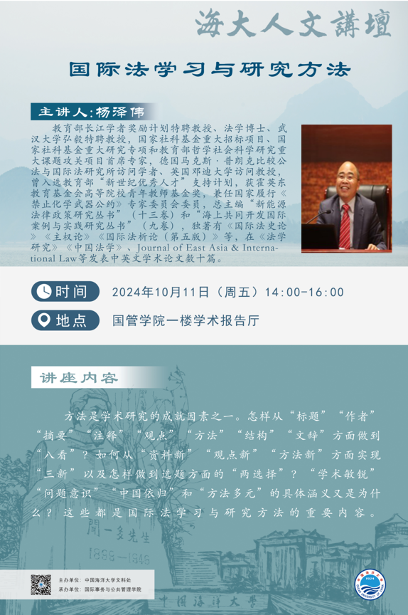 海大人文講壇2024年第72講-楊澤偉:國(guó)際法學(xué)習(xí)與研究方法