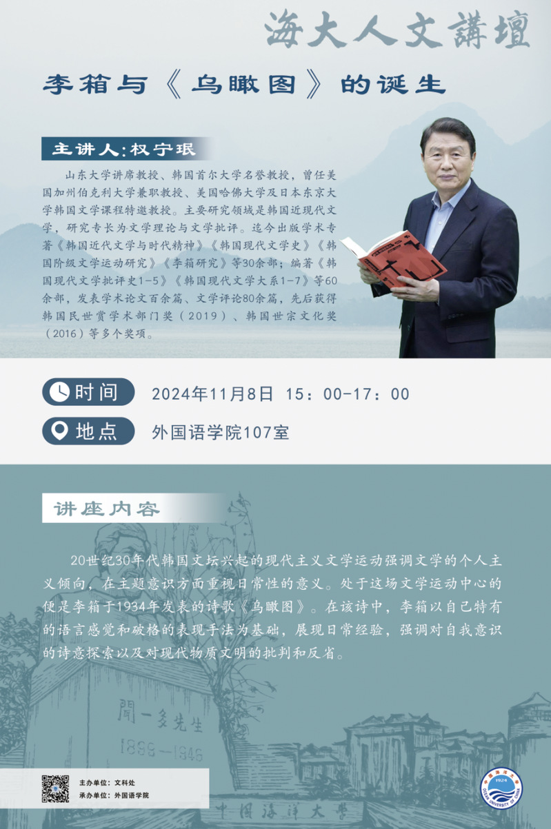 海大人文講壇2024年第82講-權寧珉:李箱與《烏瞰圖》的誕生