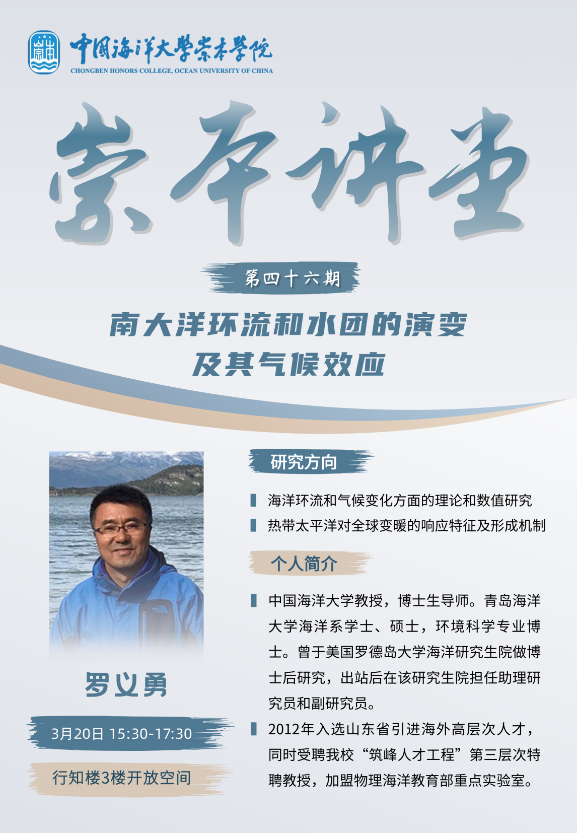 崇本講堂第四十六講-羅義勇:南大洋環流和水團的演變及其氣候效應