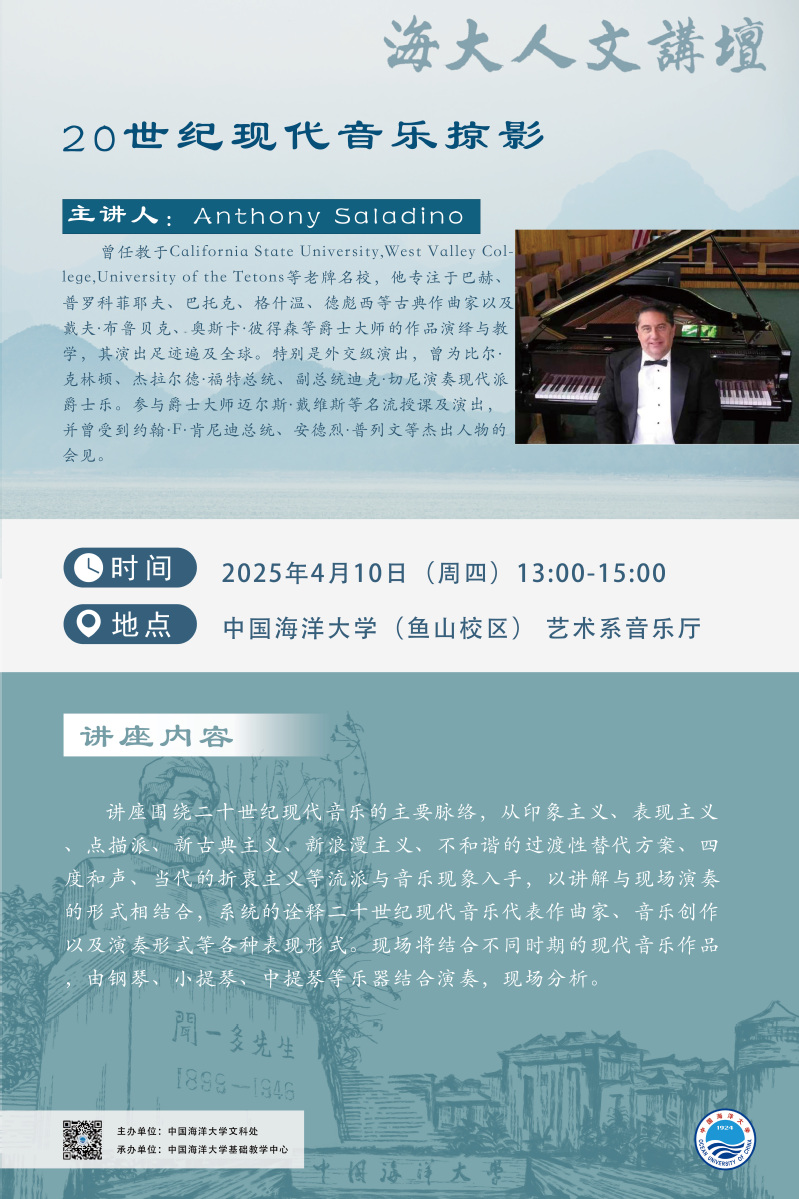 海大人文講壇2025年第15講-Anthony Saladino:20世紀(jì)現(xiàn)代音樂掠影