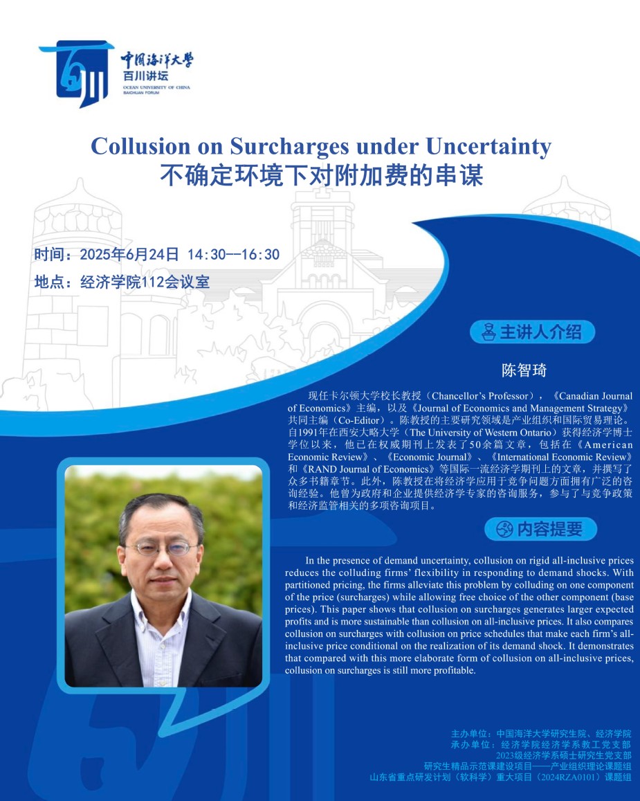 研究生百川講壇第501講-陳智琦:不確定環境下對附加費的串謀